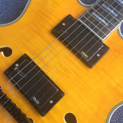 | Guitar Name: | Hollow Body Jazz Guitar,Flame Maple Top,Ebony Fingerboard,double F Holes Jazz Electric Guitar | Body: | Mahogany |