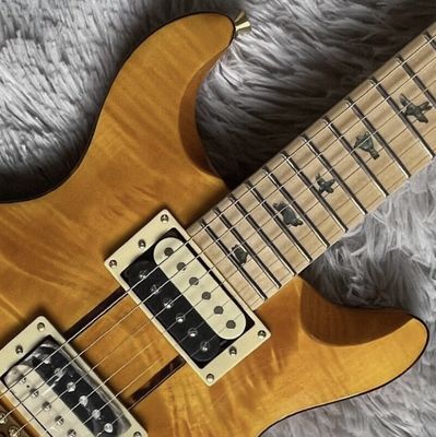 | Type Guitar | Custom Yellow Santana Retro Electric Guitar Flamed Maple Top Veneer HH Pickups Tremolo |