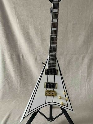 White V Shape Electric Guitar Solid Body HH Pickup Gold Hardware