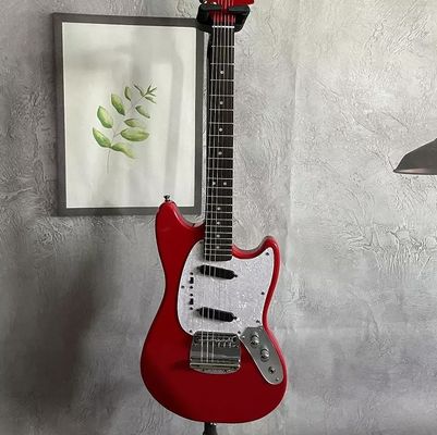| Guitar Name: | Custom Fender Mustang Style Electric Guitar In Red S-S Pickups Chrome Hardware | Body: | Mahogany |